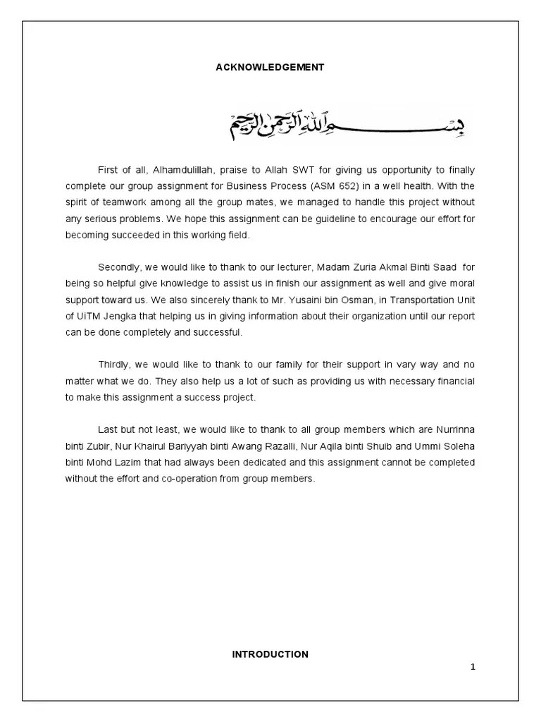 Uitm Example Of Acknowledgement For Group Assignment : Examples Of Acknowledgement For Report Jamircxt